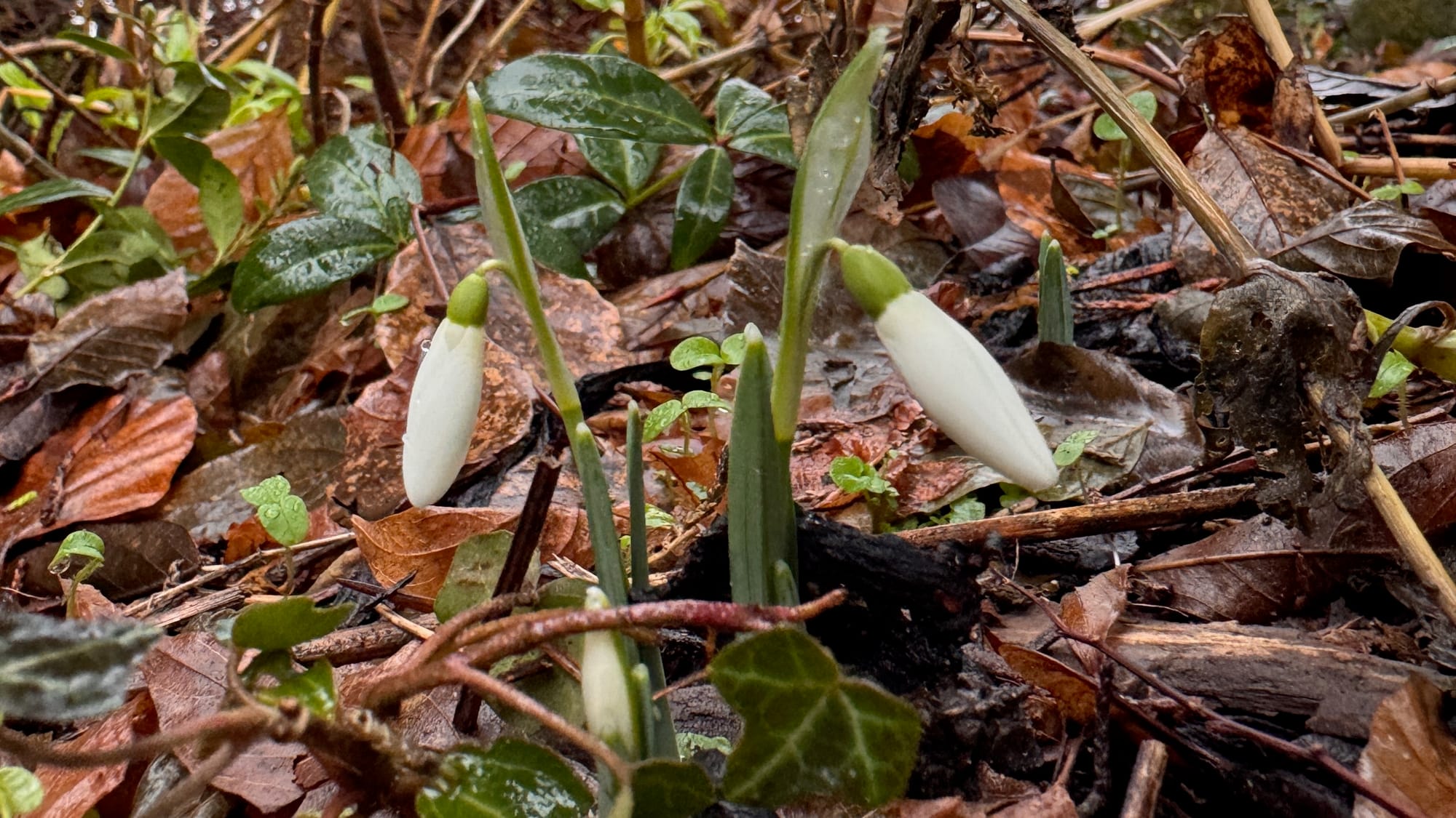 Every year, I look out for the emerging snowdrops. I planted these guys two years ago when we moved here and they're gradually multiplying.